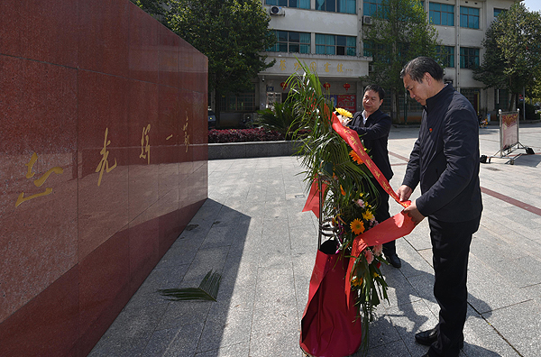 (向“蔡和森同志光辉一家”群雕敬献花篮)