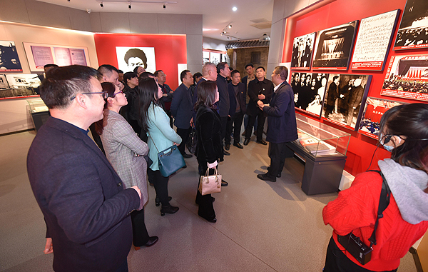 党课结束后,与会人员乘车前往双峰蔡和森纪念馆。大家首先在蔡和森纪念广场向“蔡和森同志光辉一家”群雕敬献花篮,重温了入党誓词。随后又来到蔡和森纪念馆参观,在馆长尹晓奔的介绍下,现场接受党史教育,学习蔡和森同志的丰功伟绩,体悟他的思想,汲取前进力量。