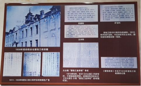 楚怡高级工业学校1911年开办机械科,1915年开办矿冶科,1928年开办土木科。该校从长沙迁至新化县白沙洲,占地8580平方米,是新化籍著名民主教育家陈润霖先生于1909年在长沙创办的一所民办学校。
