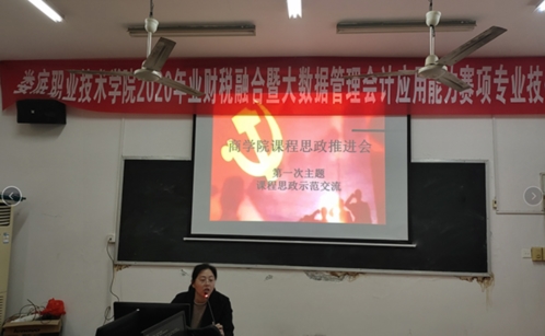 4月14日下午4点30分,商学院在实训楼316室举行了“课程思政推进会”教研活动。教学副院长郭赞伟出席并主持会议,全体专任教师参加会议。