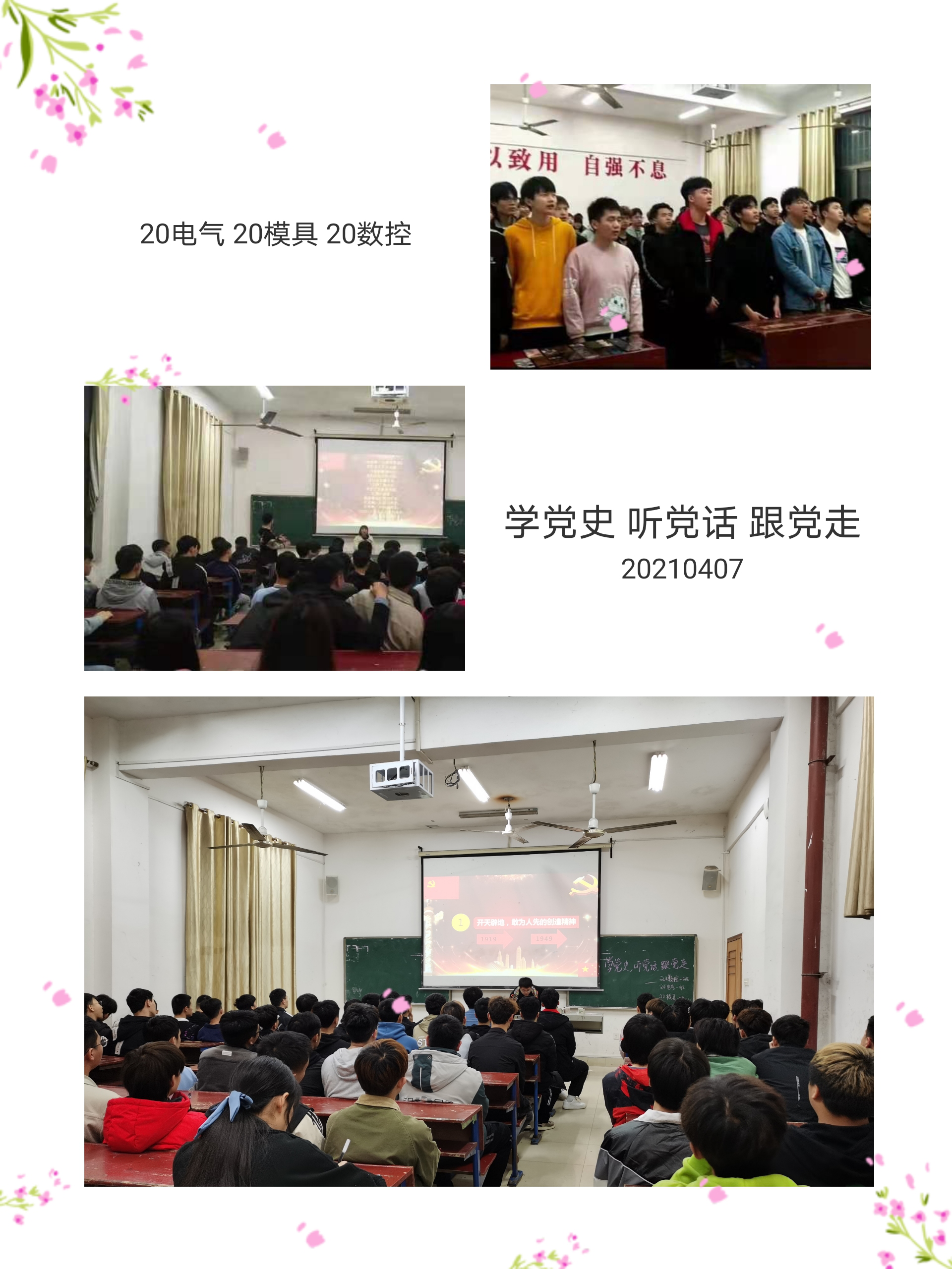 截至2021年4月23日,机电工程学院19个班级组织生活全部开展完毕,并且按时上交了组织生活活动记录表、新闻稿与总结。学习历史,是为了更好地走向未来。学习党史,“明”中国共产党为什么能、马克思主义为什么行、中国特色社会主义为什么好之“理”,实质是树立正确历史观,把握历史规律和大势。在正确历史观的指引下,把握党史发展的主题和主线,党史的主流和本质,深刻理解历史规律,按历史规律办事,我们就一定能够无往不胜。面对百年未有之大变局和中华民族伟大复兴战略全局,唯有始终高举中国特色社会主义伟大旗帜,牢牢坚持新时代党的创新理论的指导,坚定发展方向,才能在变局中开新局,推动建设社会主义现代化国家。(彭可)