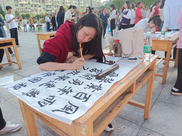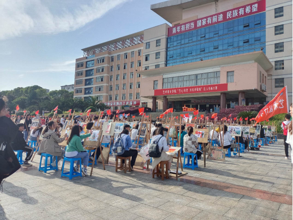 为庆祝建党100周年,培养学生爱国爱党情怀,娄底职院艺术设计学院于4月29日下午在该校文化广场举办“艺心向党 共绘英雄情”百人书画大赛。