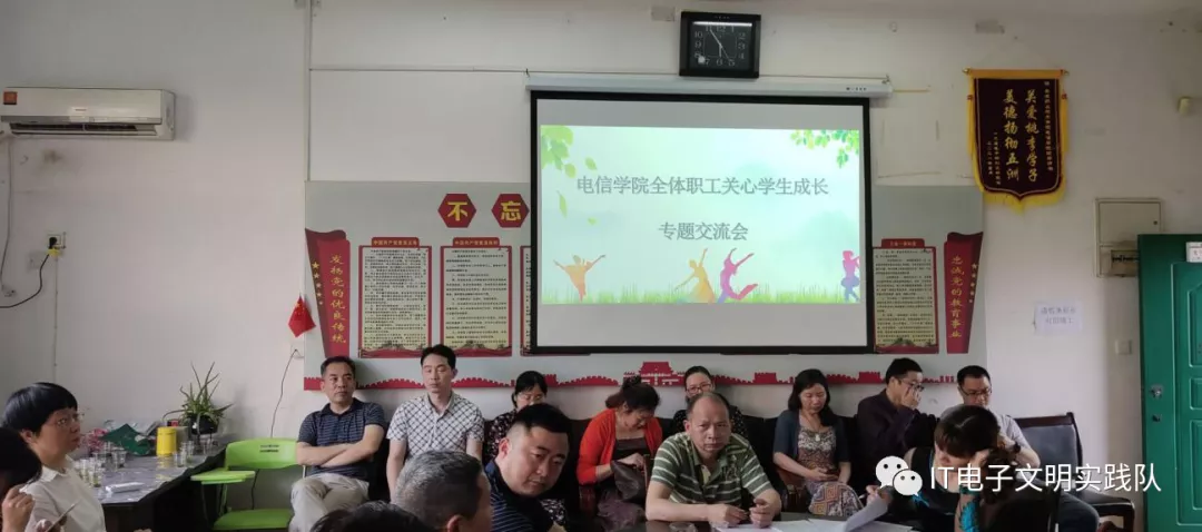 为了进一步提高辅导员队伍及任课老师教学和管理水平,及时关注当前形势下学生心理健康问题,交流推广辅导员及任课老师工作经验,促使学生健康成长,2021年5月13日下午4:30,电子信息工程学院在实训楼301开展了电信学院全体职工关心学生成长专题交流大会。本次大会由电信学院党委书记李济民主持,参会人员有电信学院院长刘罗仁、电信学院教学副院长刘理云、电信学院学工副院长邓明亮、电信学院全体辅导员和全体专业老师。