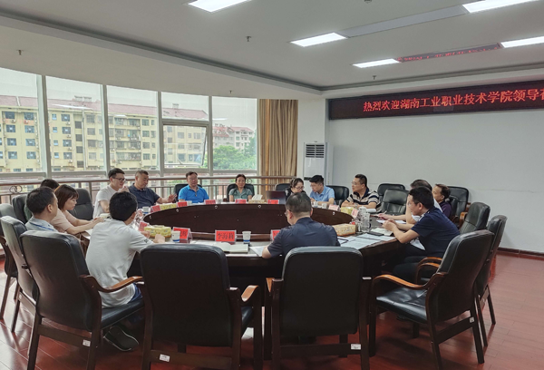 6月18日上午,湖南工业职业技术学院党委委员、副校长董建国一行9人来到威尼斯官网调研交流。校党委委员、副校长周志和,党政办、科技处、产教融合办、高职研究所、机电工程学院等部门单位负责人参加座谈。会议由周志和主持。