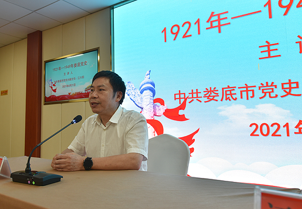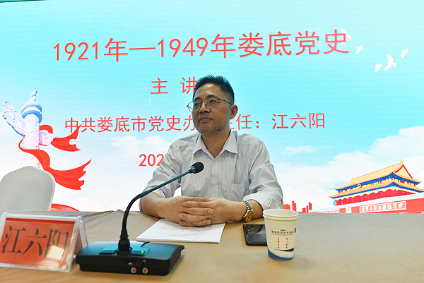 王健龙主持了第二阶段会议。由市委党史研究室副主任江六阳为全体与会党员做娄底党史专题讲课。讲课回顾了新民主主义革命崛起时期、土地革命时期、抗日救亡时期、解放战争四个时期我党的奋斗历程,讲述了娄底地方党史以及英雄事迹,让大家深受感悟。(文/朱春莉 图/吴翔 胡婧媛 赵亚芳 肖遥 张雪莲)