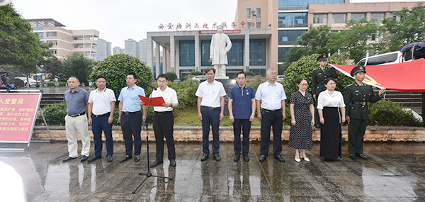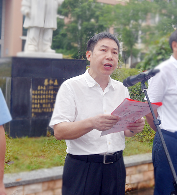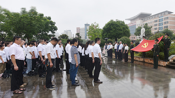 6月30日上午,为庆祝中国共产党成立100周年,在中国共产党早期重要领导人、杰出的共产主义战士、无产阶级革命家、理论家和宣传家蔡和森同志的塑像前,威尼斯官网举行新党员入党宣誓仪式。全体校领导、各党总支、直属党支部书记、副书记、组织员,党政办、组织部、宣传统战部、纪检监察处、学工部、保卫处、团委等部门负责人,246名2021年上半年发展的新党员参加。虽然天公不作美,但新党员宣誓的热情丝毫未减,在雨中经历了一场难忘的政治“洗礼”。