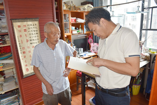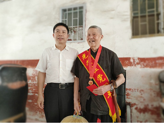 党委副书记王健龙为不能到现场领取“光荣在党50年”纪念章的老党员张锡昭同志佩戴绶带和纪念章,仔细询问他的身体和生活状况,并诚挚祝福张老身心愉悦、晚年生活幸福!