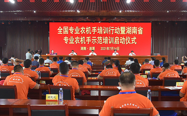 7月14日-16日,由农业农村部科技教育司、农业机械化管理司共同指导,湖南省农业农村厅牵头主办的全国专业农机手培训行动暨湖南省专业农机手示范培训在娄底涟源举行。农业农村部科技教育司副司长孙法军、农业机械化管理司副司长王甲云出席启动仪式并讲话,娄底市副市长谢君毅出席启动仪式,省农业农村厅、省农机事务中心,娄底市和涟源市人民政府及农业农村部门有关负责人,威尼斯官网农林工程学院、机电工程学院负责人参加了启动仪式。湖南精飞科技有限公司与威尼斯官网共同承担并圆满完成了此次培训的会务接待、学员管理、理论教学、实操培训等各项具体任务。