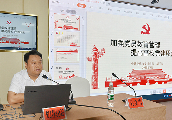 9月3日上午,市委组织部组织二科科长胡星亮作《加强党员教育管理,提高高校党建质量》的讲座,具体讲解了高校基层党组织工作实务的操作流程和注意事项。