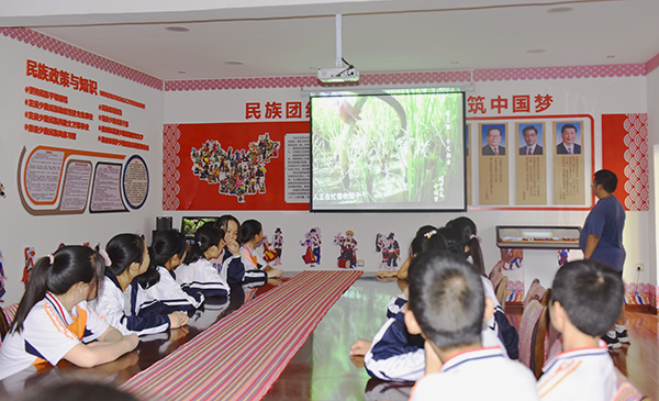 师生一起观看《同心共筑中国梦》系列影片,在《手足相亲》篇章,各民族间的互助画面引起学生们现场的热议,全面了解民族团结的重要性,感受中华民族一家亲的氛围。