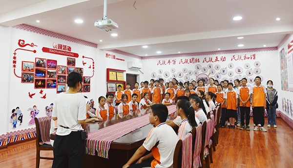 校宣传统战部副部长欧阳琦在基地内生动地向到访师生介绍了娄底职院民族团结进步教育工作的开展情况。