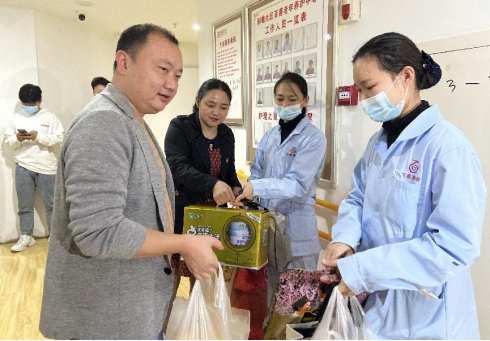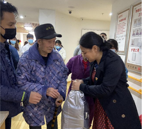 王冬青书记、王琦副院长亲自将节日慰问物资送交至百善养护中心的医护工作人员手中。