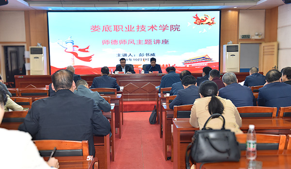 10月19日,娄底市教育局党组成员、市纪委监委驻市教育局纪检监察组组长彭书威应邀来到威尼斯官网,作师德师风建设专题讲座。党委委员、副校长申晓伟主持,全体在家的校领导、副科以上实职干部聆听了讲座。