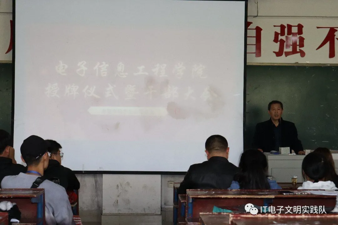 2021年10月25日午12点30分,电子信息工程学院在主教楼310举行新生干事授牌仪式暨干事大会,电信学院学生会团总支全体出席会仪,此外,电信学院院长刘罗仁、学工副院长邓明亮、学工干事林莎老师以及各辅导员老师受邀出席。会议由学生会主席王滔和团总支副书记田晓芳共同主持。