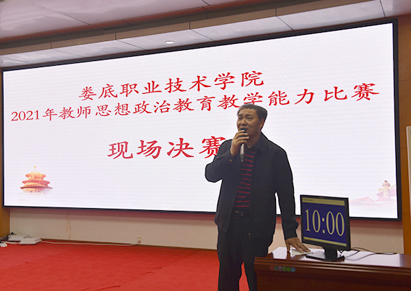 朱忠义勉励参赛选手:教师要以渊博的知识教育学生,要以高尚的品德、良好的修养感染学生,要以睿智的思想教育学生。课程思政是塑造学生灵魂的好事,是影响学生终生的实事,也是把思政元素同专业课程有机结合起来的难事。如何把好事办实、把实事办精、把难事办出成效,是每位教师要研究的课题;如何增强思政课程教学上的趣味性、感染力、实效性,也是每位思政教师需要思考的问题。他强调,各二级学院(教学部)要通过比赛,以赛促教,以赛促改,以赛促研,推动教师能力的进一步提升。