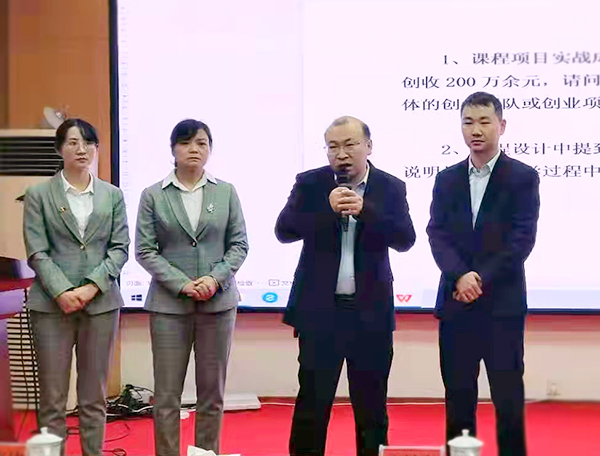 进入此次决赛的13支参赛团队由各二级学院(教学部)通过初赛选拔产生。现场决赛分为说课展示和答辩两个环节,由评委组严格按照评分标准进行打分。最终,喻彩霞老师课程团队的《农旅融合,初心如炬;匠心育人,楚材斯盛》、邓思琴老师课程团队的《基于“三兴”的新媒体营销》获得一等奖。