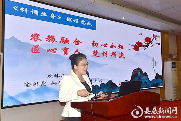 进入此次决赛的13支参赛团队由各二级学院(教学部)通过初赛选拔产生。现场决赛分为说课展示和答辩两个环节,由评委组严格按照评分标准进行打分。最终,喻彩霞老师课程团队的《农旅融合,初心如炬;匠心育人,楚材斯盛》、邓思琴老师课程团队的《基于“三兴”的新媒体营销》获得一等奖。