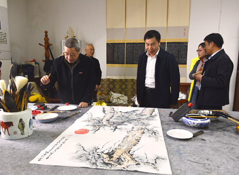 王健龙、周志和与老书画家们对此次廉政主题及现场创作的作品进行交流。