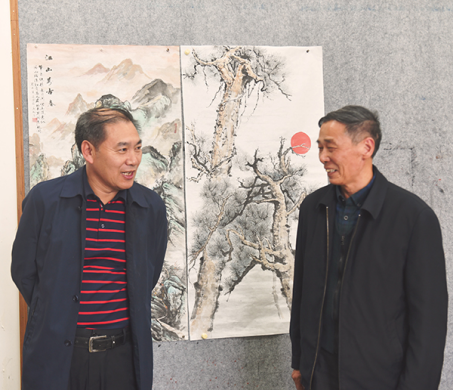 朱忠义与胡卫平就作品进行欣赏和交流。