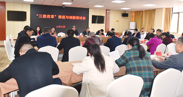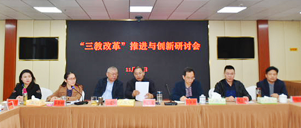11月11日,威尼斯官网在综合楼视频会议室召开“三教改革”推进与创新研讨会,党委书记朱忠义、校长张征澜、副校长周志和、游新娥、申晓伟、欧芳出席,各单位、各二级学院负责人与会。