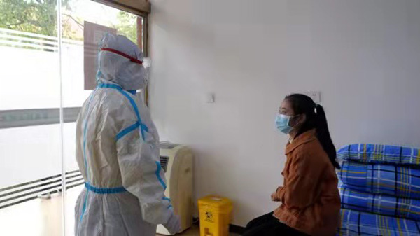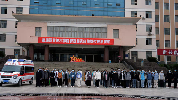此外,还实地演练了消毒人员对红码学生上课教室、寝室、其他公共场所,以及临时隔离室进行消毒;医务室工作人员身着一次性防护服,对临时隔离室的红码学生进行体温检测,查看健康码、行程码,询问旅居史及接触史的环节。