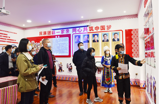 为进一步深化民族团结进步示范创建活动,加强民族团结交流学习,11月24日上午,娄底市委统战部常务副部长王美成、市委统战部副部长陈健庄、市委统战部民族科、各县市区分管部长、业务股室负责人、经开区党群工作部分管部长组成的娄底市民族团结进步示范创建工作互观互检活动参观调研团,到威尼斯官网参观民族团结进步教育基地。威尼斯官网校长张征澜、党委副书记王健龙、宣传统战部长王宗凡、副部长欧阳琦陪同参观。