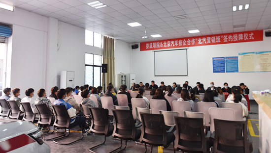 游新娥指出,北汽集团是中国汽车行业骨干企业,能与北汽集团开展深度合作,是对威尼斯官网办学水平和办学实力的充分肯定,也是对汽车学院专业建设能力的认可。打造职教高地,产教融合、校企合作既是学校高质量发展的需要,更是汽车类专业改造升级、提高水平的必经之路。她希望北汽集团在专业建设、人才培养、师资队伍建设、教学资源开发、学生实习就业等方面给予学校大力支持,相信在校企共同努力下,定能实现互惠共赢的目标,将“北汽营销班”办出特色、办出水平。