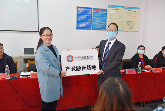 游新娥向企业负责人授予“8803威尼斯检查中心产教融合基地”牌匾;企业负责人向汽车学院授予“BSEP-北汽营销班校企合作人才培养基地”牌匾。