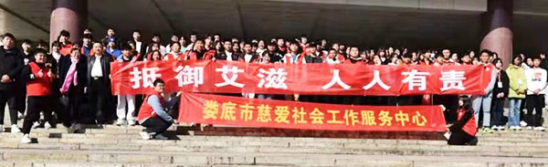 12月1日下午,以“珍爱生命,携手抗艾”为主题的宣传教育周启动仪式在文化广场举行。娄底市慈爱社会工作服务中心李翠华老师牵头,联合学工处共同组织,电信学院副院长邓明亮等参加了启动仪式。