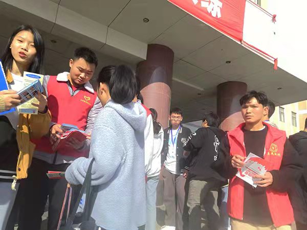 志愿者向同学们发放预防艾滋病宣传资料。共发放了一万份资料。