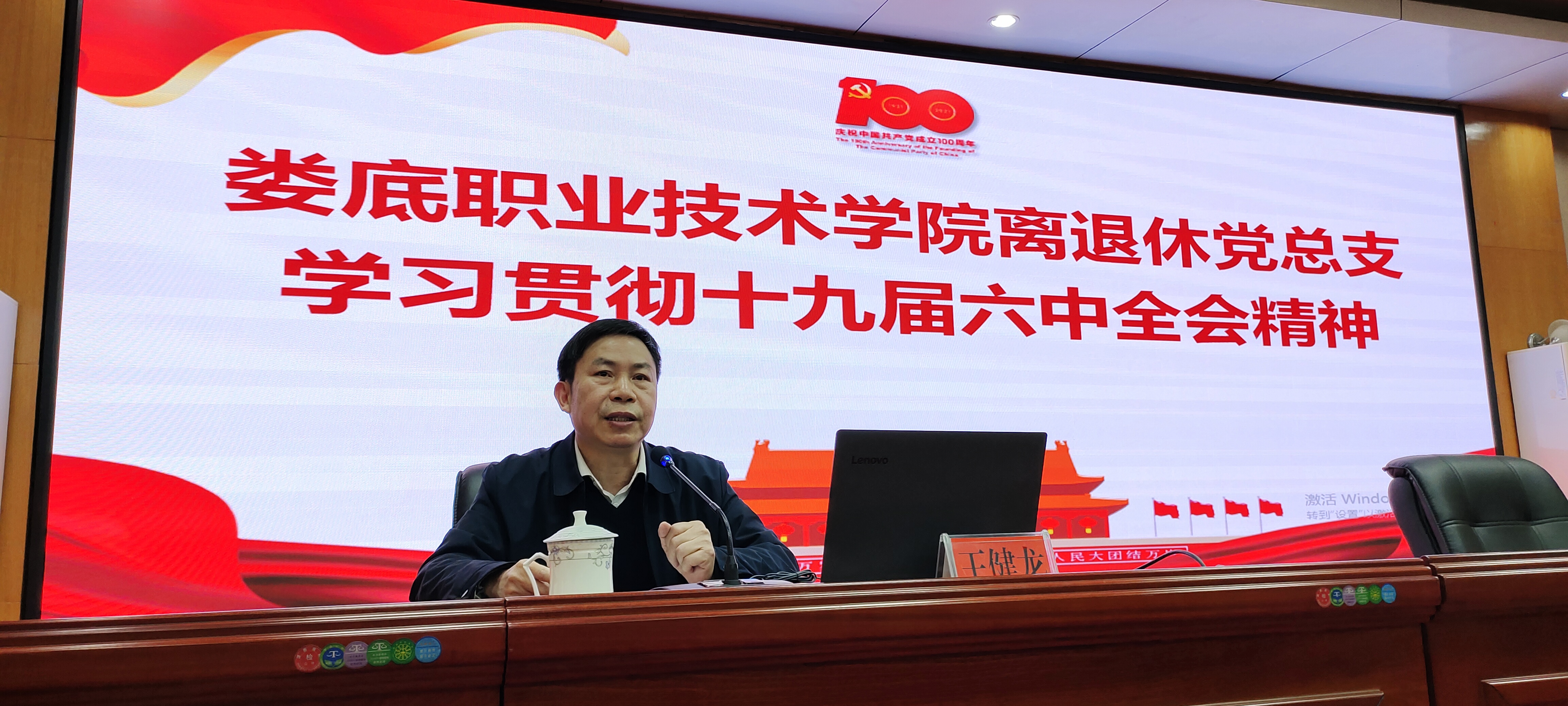 王健龙以《吸取百年精神营养 赶考新的奋斗征程》为题,围绕十九届六中全会的历史意义、深入学习领会六中全会精神、系统贯彻六中全会精神等三方面做了内涵深刻、内容丰富的解读。