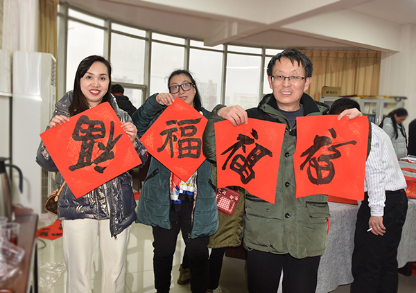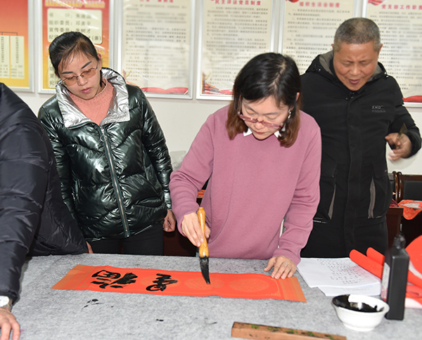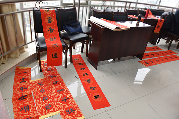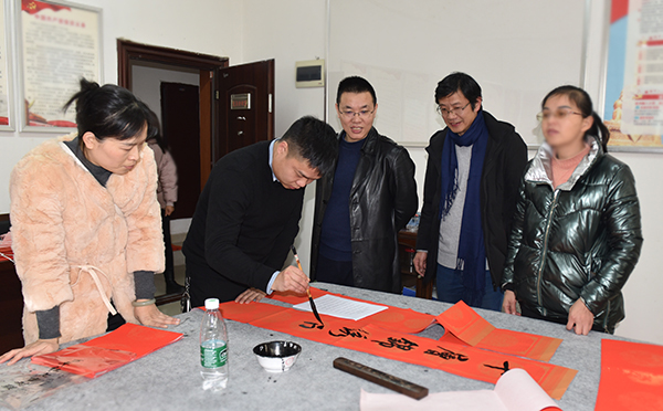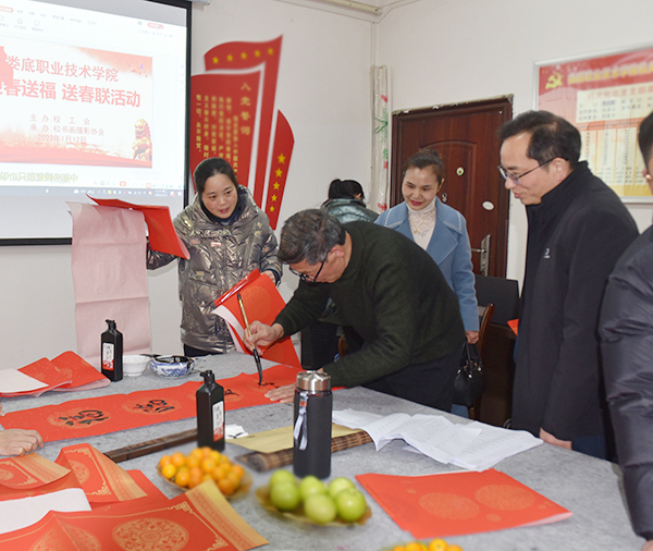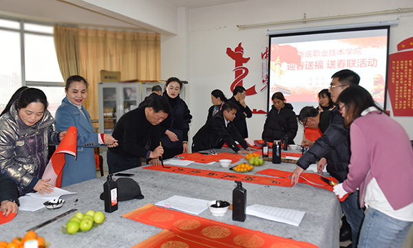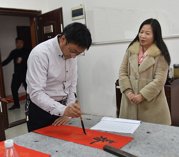 “学校每年都给大家写福字送春联,特别温馨!”1月12日,综合楼七楼会议室喜气盈盈,许多老师在这里拿到了在工会预约的春联、福字,感觉十分满足。随着春节的临近,为增添广大教职工红红火火过新春的祥和喜庆气氛,校工会开展为教职工“写福字送春联”活动。各分工会登记统计教职工们书写春联和福字的需求,由校书画协会邀请娄底书画名家现场集中书写。此次活动持续三天,共为400余名教职工撰写了500幅春联、1500个福字,为教职工们送上了新春的祝福,让大家感受了书法艺术的魅力。