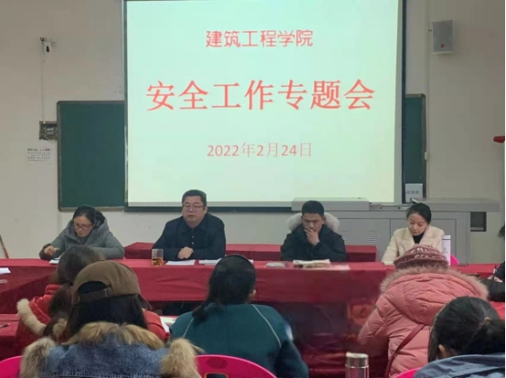为切实抓好学院各项安全管理工作,增强教师及学生的安全意识,杜绝校园安全事故的发生,2月24日,建筑工程学院召开了“安全工作专题”会议。学院全体教职工参加了本次会议。
