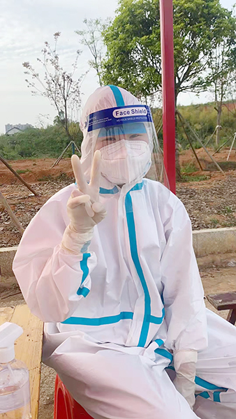 4月6日,来自新化县金凤乡卫生院的汪子筠赶到娄底城区,加入了这里的抗疫核酸检测和流调工作。