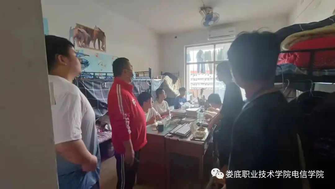 下午,学工副院长邓明亮带领各班辅导员及学生会干部对各年级学生宿舍开展卫生检查工作。发现大部分寝室卫生保持良好,做到了阳台洗漱池和桌面干净整洁,生活用品及学习用品摆放整齐;地面干净,门口无垃圾堆放,符合学院对寝室卫生管理的要求。