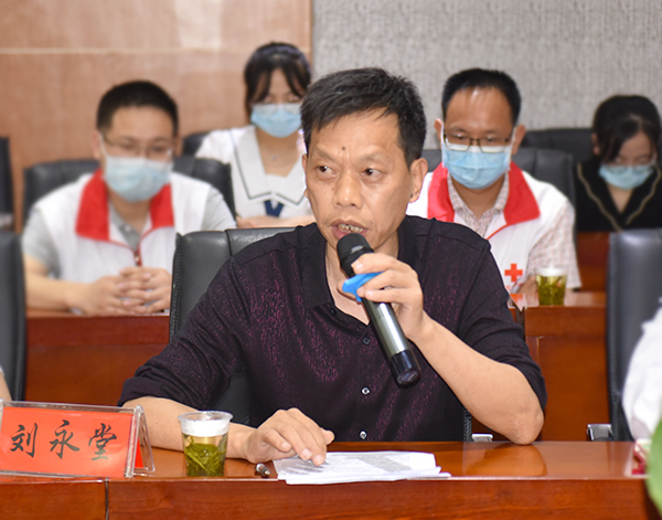 医学部基础医学院院长刘永堂向与会领导详细介绍了娄底职院医学部红十字会的基层组织架构以及无偿献血、造血干细胞捐献、遗体器官捐献等工作开展情况。