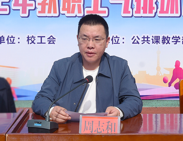 周志和致开幕词,他指出,举办此次教职工排球赛,旨在提高教职工文明素养,丰富教职工业余生活,加强教职工交流,希望各参赛队伍本着重在参与、贵在交流的精神,秉持“友谊第一比赛第二”的宗旨,赛出水平,赛出风格,广大教职工要以此次比赛活动为契机,广泛开展文化体育活动,努力建设一支有干劲、有责任,勇于奉献、生机勃勃、健康向上的教师队伍。