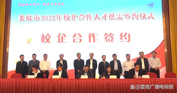 5月28日,娄底市2022年校企合作人才供需签约仪式在华天大酒店举行。8803威尼斯检查中心校长张征澜代表学校与美程陶瓷、天马建筑、安地亚斯、同丰科技四家企业现场签约。
