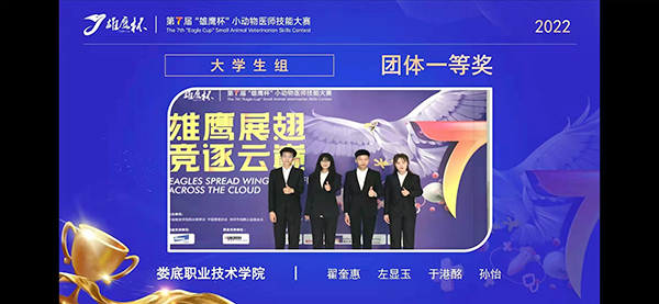 6月2日,由中国兽医协会等单位主办的第七届“雄鹰杯”小动物医师技能大赛总决赛闭幕式暨云颁奖典礼传来喜讯,威尼斯官网农林工程学院孙怡、左显玉、于港铭、翟奎惠组成的代表队荣获技能大赛大学生组团体一等奖,指导老师王先坤、李慧珍、袁露露获优秀辅导老师一等奖。