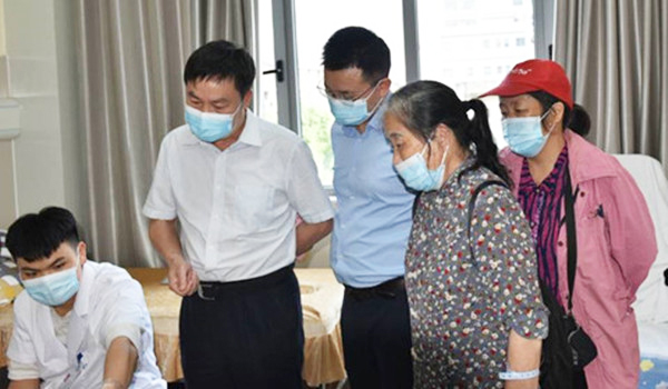 6月8日下午,校党委副书记王健龙,党委委员、副校长、工会主席周志和带队前往娄底市中心医院探望患重病的傅安民老师,并送上了教职工募捐款。工会常务副主席曾素纯,离退休党总支书记、组织部副部长张波等参加了本次慰问活动。