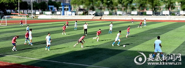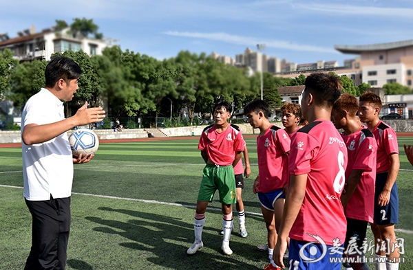 (湖南湘涛足球俱乐部助理教练刘少程现场指导学校足球队)