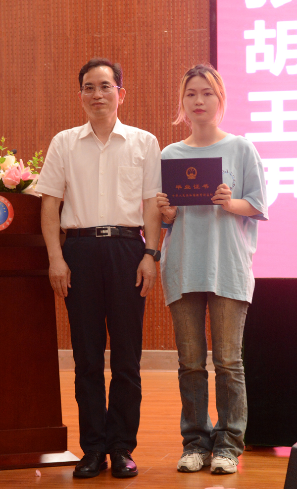 校长张征澜为2022届毕业生代表颁发毕业证书。