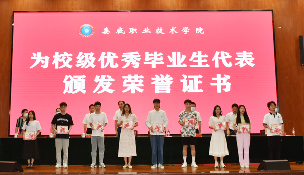与会校领导为2022届校级优秀毕业生代表颁发荣誉证书。
