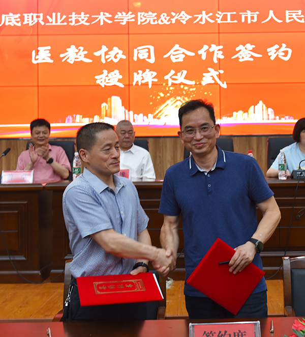 接着,学校校长张征澜与医院党委书记张熊在与会人员的共同见证下签署合作协议。