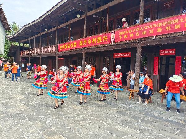 第二天,观摩团一行到了下团村。观摩团成员饶有兴致地观摩了2018年湖南卫视新春走基层直播奉嘎山主会场址,观看了少数民族舞蹈表演,参观了同心书画院、桃花源古村落建筑、沿河风光带,后前往上团村参观红二军团司令部旧址。