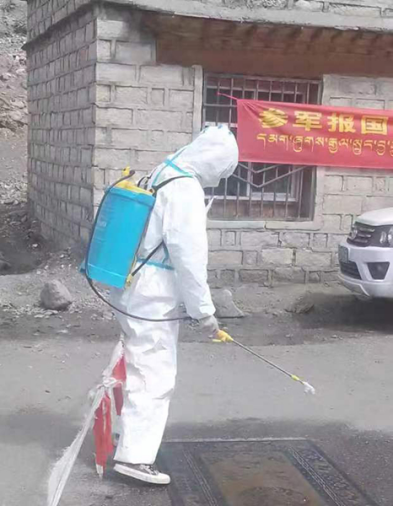 罗布次仁在消毒工作现场