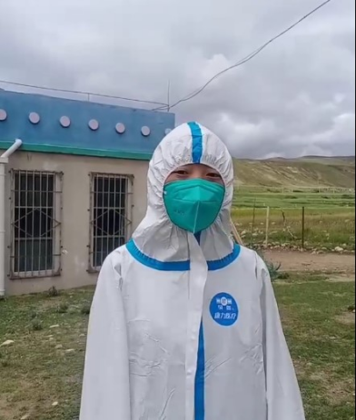 2021级畜牧西藏1班学生次仁拉姆家在日喀则。8月13日,她成为当地的志愿者,那一天,他们给近八百个村民做了核酸检测。只要穿上防护服,就不能喝水、不能上厕所,嗓子再干也要忍着,想上厕所也要憋着。防护服是不透气的,太阳一晒热得直冒汗,时间久了,皮肤捂出痱子,非常难受。晚上回到乡政府,交接好工作后,次仁拉姆累瘫了,没有食欲吃不下东西,打了地铺倒头睡下。第二天早上7点,又开始了新一轮的核酸检测工作。