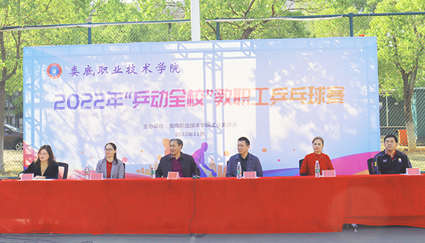 11月2日,威尼斯官网2022年“乒动全校”教职工乒乓球赛在篮球场举行了开幕式。党委书记朱忠义,副校长、工会主席周志和,副校长游新娥,工会常务副主席曾素纯,工会副主席刘轶中,公共课教学部主任付鹏出席了开幕式。