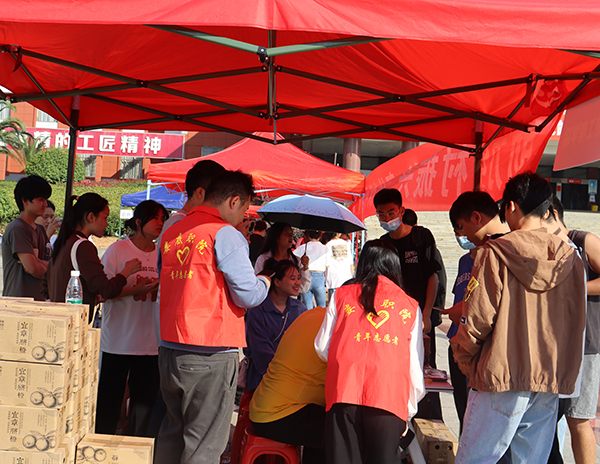 活动中,“这是脐橙,宜章脐橙,坚持健康种植,山泉水灌溉,农家肥种植”“这是我们农户刚摘下没多久的柚子,非常新鲜,纯天然,无公害…”参赛学生向过往师生介绍产品,当起了农产品的代言人;他们积极邀请老师和同学们参与试吃、试用活动,通过试吃、试用活动较好地宣传、推广产品,学校师生纷纷参与其中,党委书记朱忠义、副校长申晓伟等校领导也带头扫码购买,活动当天的所有产品都销售一空。