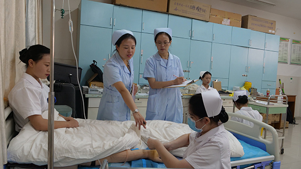 为了更加准确的把握大赛的评分点和标准,祝青将自己定位为一名选手,严格要求自己按照比赛的评分标准来完成技能操作。她说:“只有自己按照评分标准去实践,才能体会学生完成操作时的难点,这样才能指导学生改进操作方法”。在指导心肺复苏操作时,学生常常不能准确的把握按压深度和吹气量,她就在模型上练习,一天练下来手腕都肿了,提不起重物。她将自己练习时的经验与感受分享给学生。功夫不负有心人,2018年,她指导学生参加湖南省职业院校技能竞赛(中职组),在省赛中成功突围晋级国赛,这是娄底市护理专业学生首次入围全国护理技能竞赛并获奖。